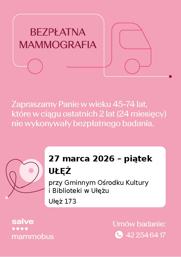 Bezpłatne badania mammograficzne w Ułężu.