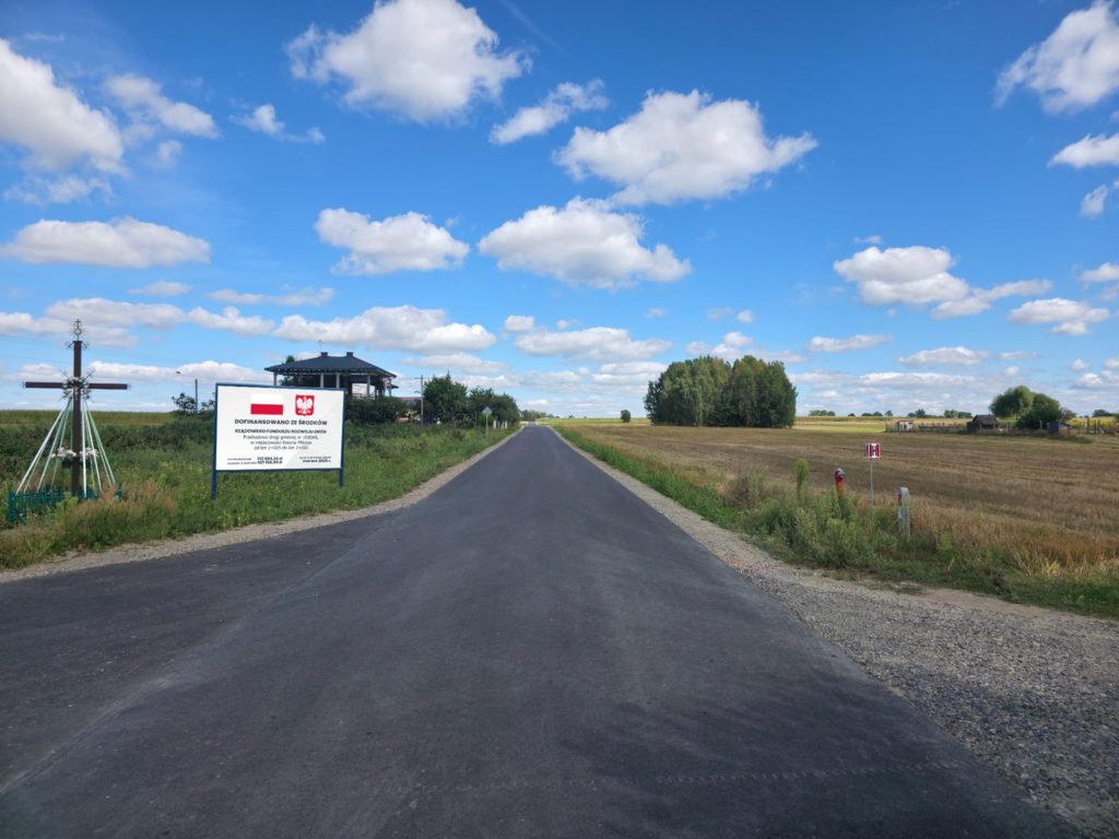 W dniu 1 sierpnia 2025r. oddano do użytkowania zadanie pn.: „Przebudowa drogi gminnej nr 103049L w miejscowości Kolonia Miłosze od km 1+025 do km 2+010” dofinansowanego ze środków Rządowego Fundusz Rozwoju Dróg