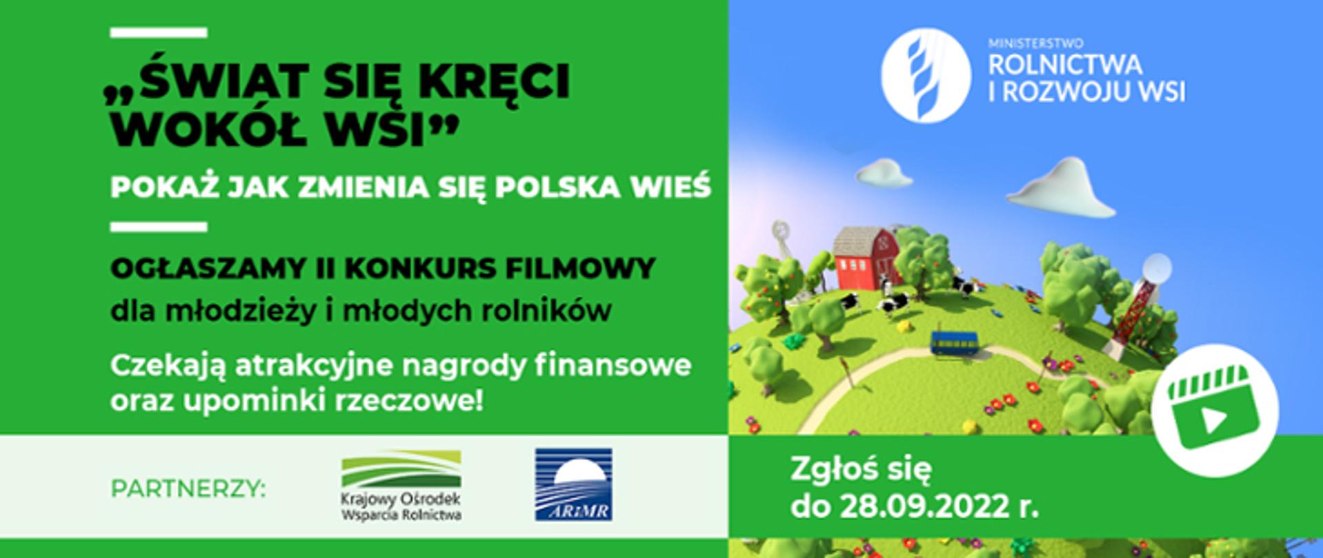 Ministerstwo Rolnictwa i Rozwoju Wsi zaprasza do udziału w II ogólnopolskim, amatorskim konkursie filmowym „Świat się kręci wokół wsi”. Nagraj i przyślij swój film. Pokaż jak zmienia się polska wieś.